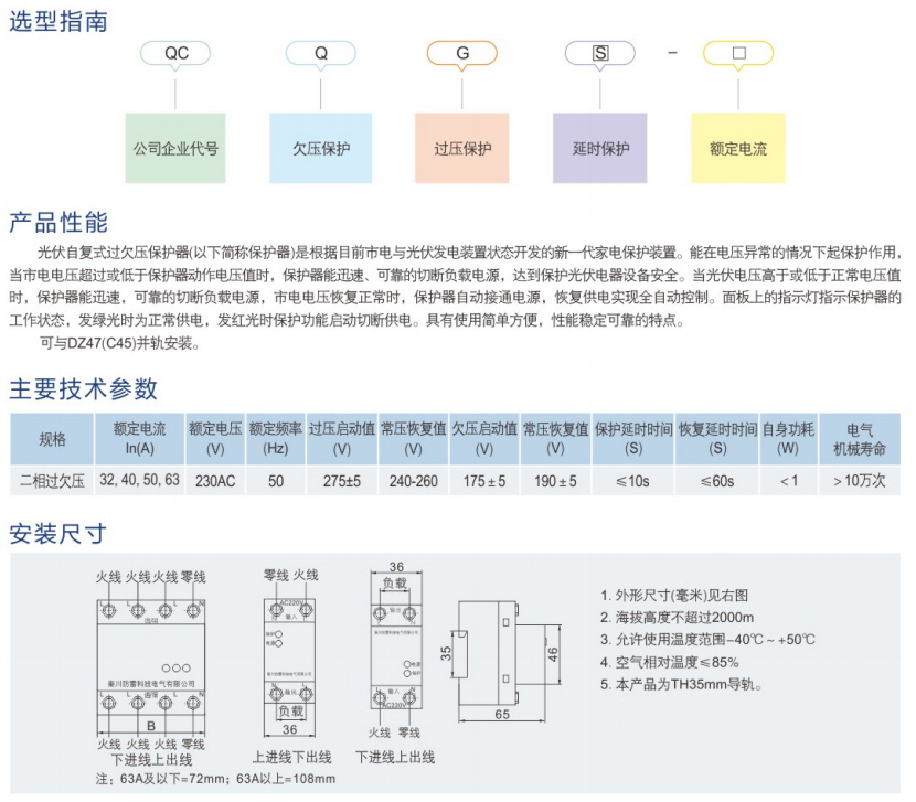 QCQGS-63光伏自復(fù)式過欠壓延時(shí)保護(hù)器